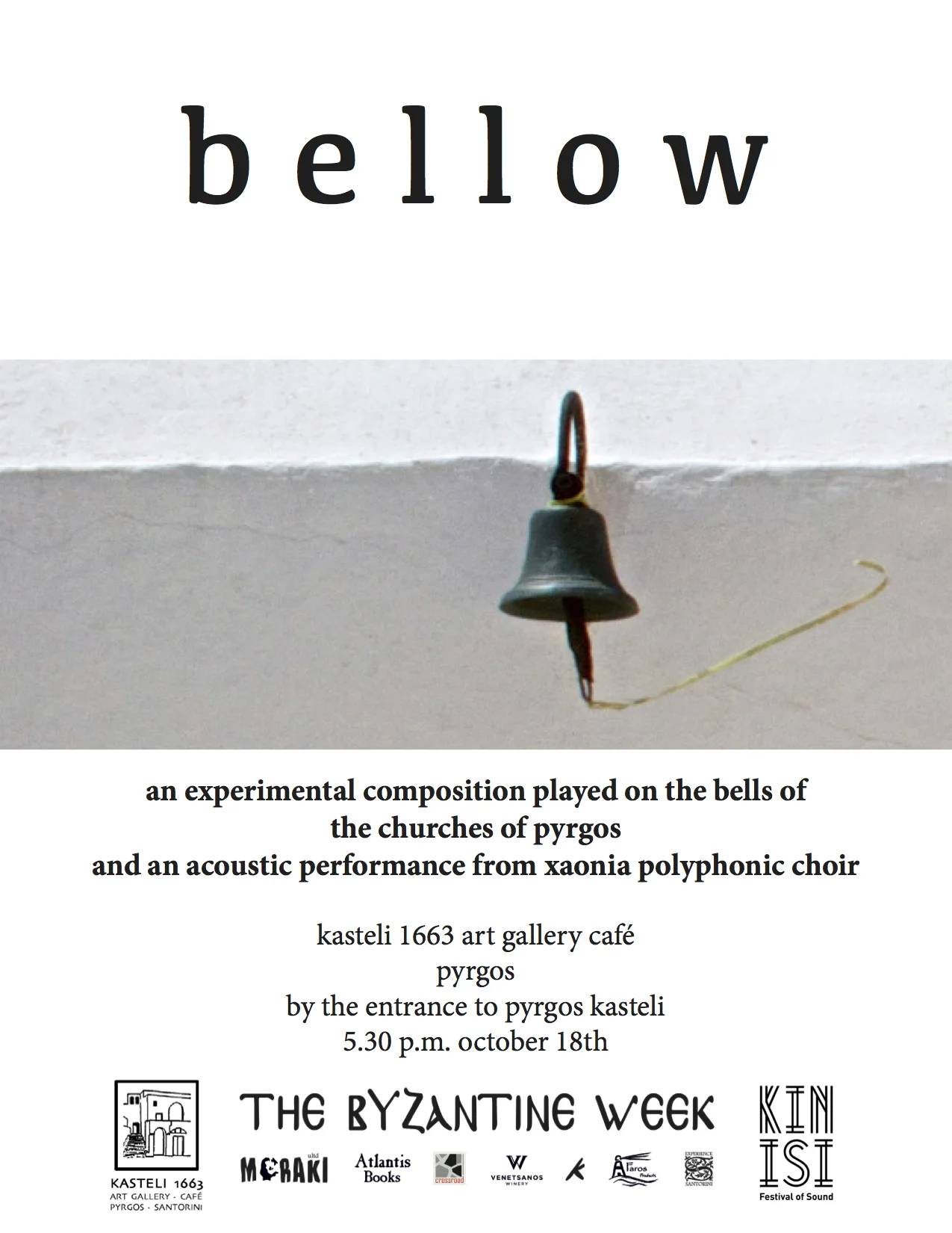 Thanks to the generosity and open-mindedness of the priest of Pyrgos Kinisi had the privilege of composing a call and response piece on the bells of five of Pyrgos' churches. The polyphonic Xaonia choir, based in Athens and responsible for the organisation of the bi-annual Polyphonic Caravan, responded to the call with an outdoor concert in the square overlooking Santorini's southern tip.